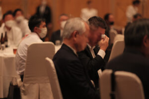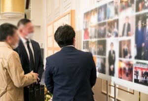 コーナーを開放するタイミングは、会食・歓談中が最も自然です。参会者が席を立って自由に動ける時間帯に合わせることで、強制的に見に行かせる形ではなく、参会者が自発的に立ち寄る雰囲気が生まれます。